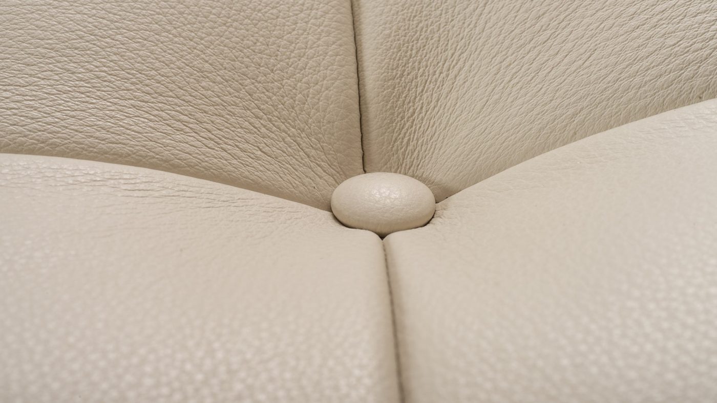 Progettata originariamente per integrarsi armoniosamente negli spazi più prestigiosi, questa seduta combina una struttura architettonica leggera con una lavorazione artigianale dei cuscini complessa e raffinata.